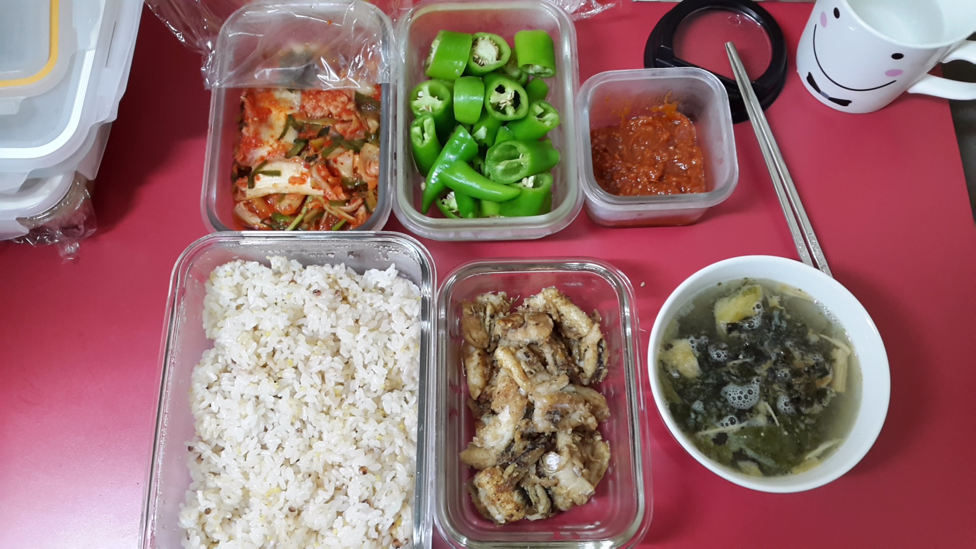사진에 보이는 밥은 아침+점심 분량이구요