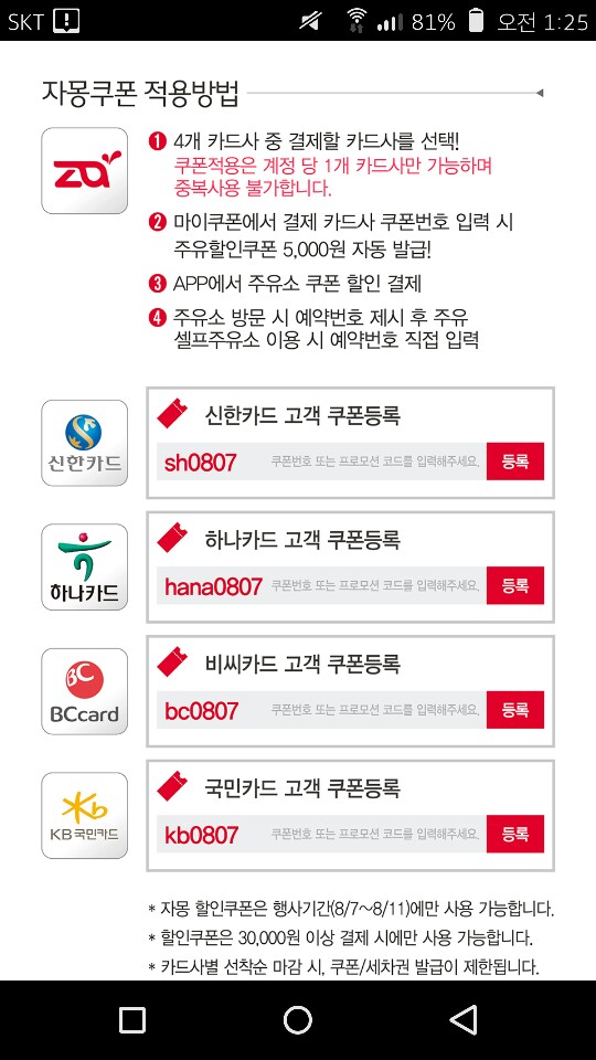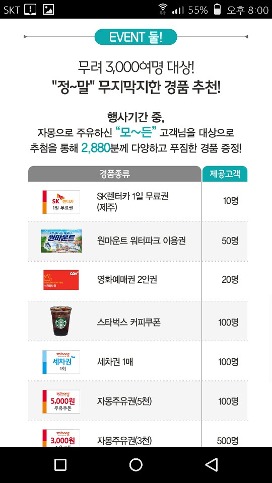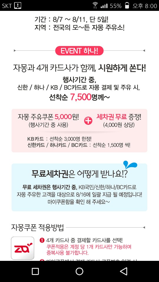 8/11 자몽 5천원 쿠폰 선착순 증정! 3만원 이상 사용가능 달리세요~ㅋㅋ 세차권도 준다고 하네요 ㅋ > 자유게시판