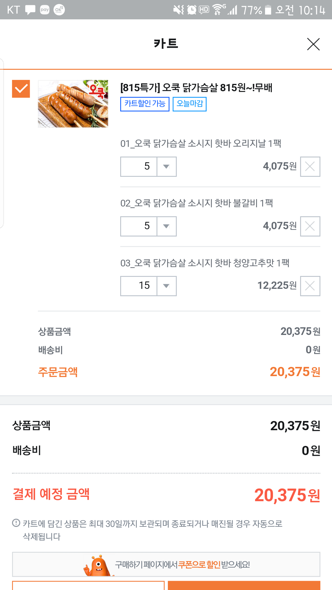 25개 2만원 어치 구매후 2500원 할인 적용해서 구매했습니다~^^
