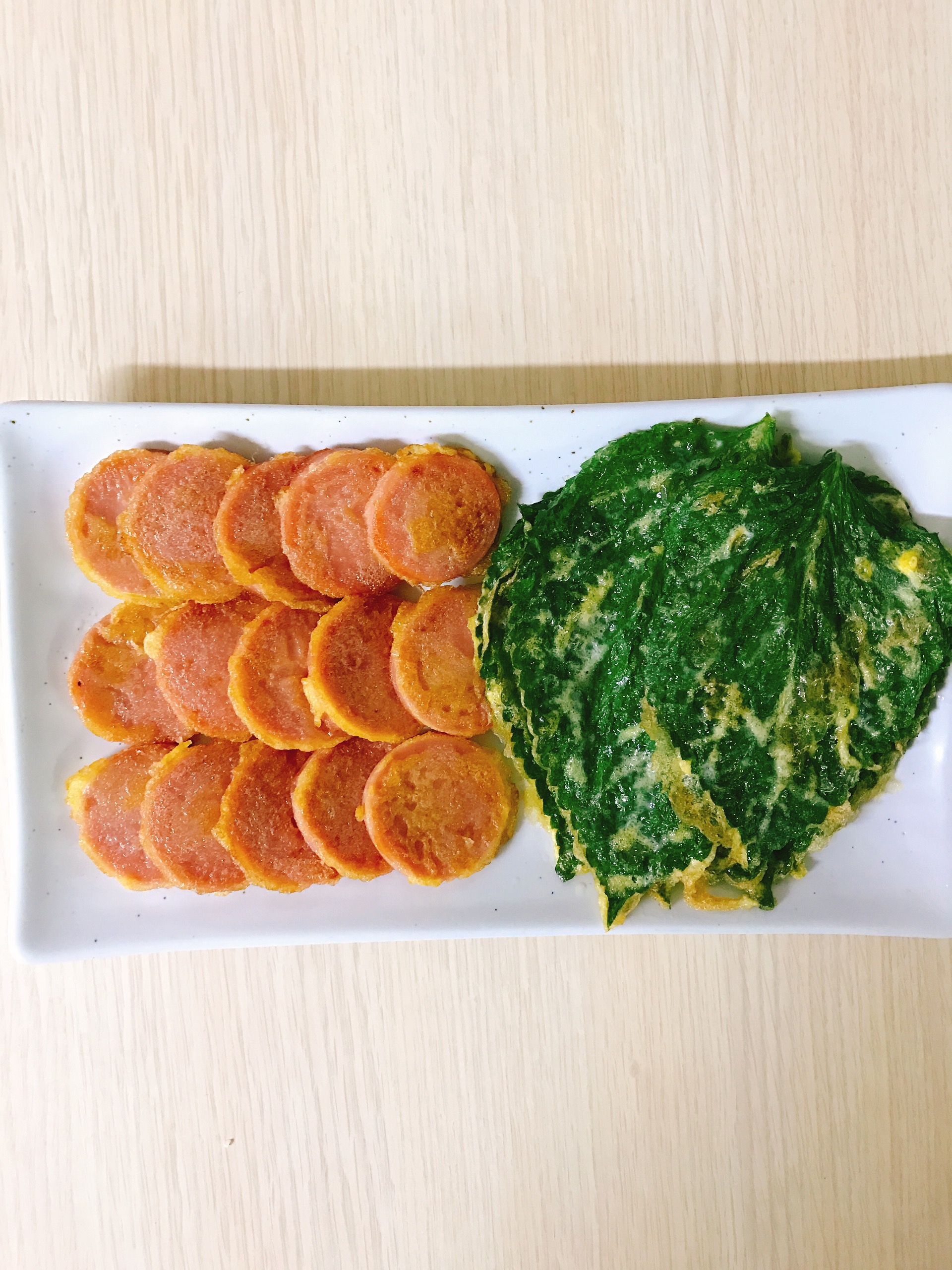된장국 과, 오전에 준비해둔 찬들, 아이가 좋아하는 옛날소세지 와, 달걀물이 남아서 저의 추억의 음식 깻잎부침까지.