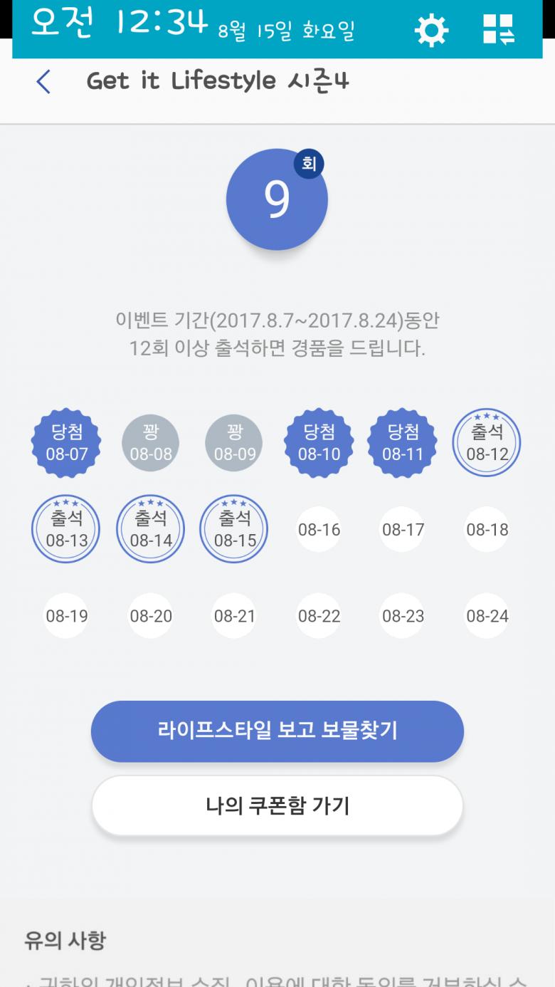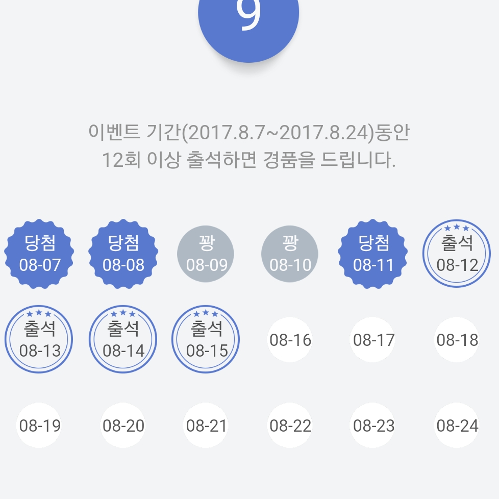 3회당첨된후엔 출석으로 뜨는거같드라구요 |