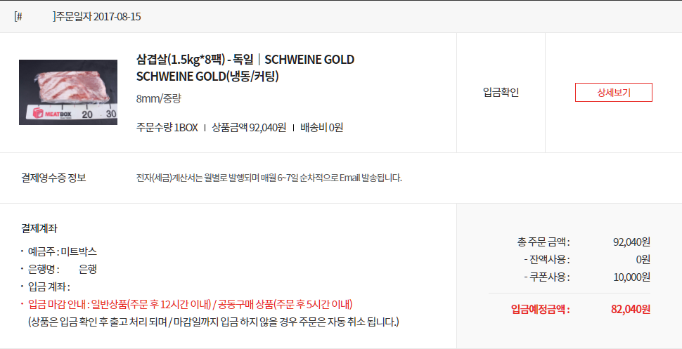 삼겹살 12kg 구입