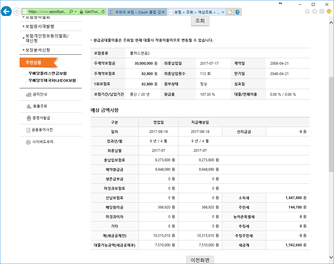 좋은 보험이야 당연히 있는건데 10년에 107프로면  좋은건가요?????
