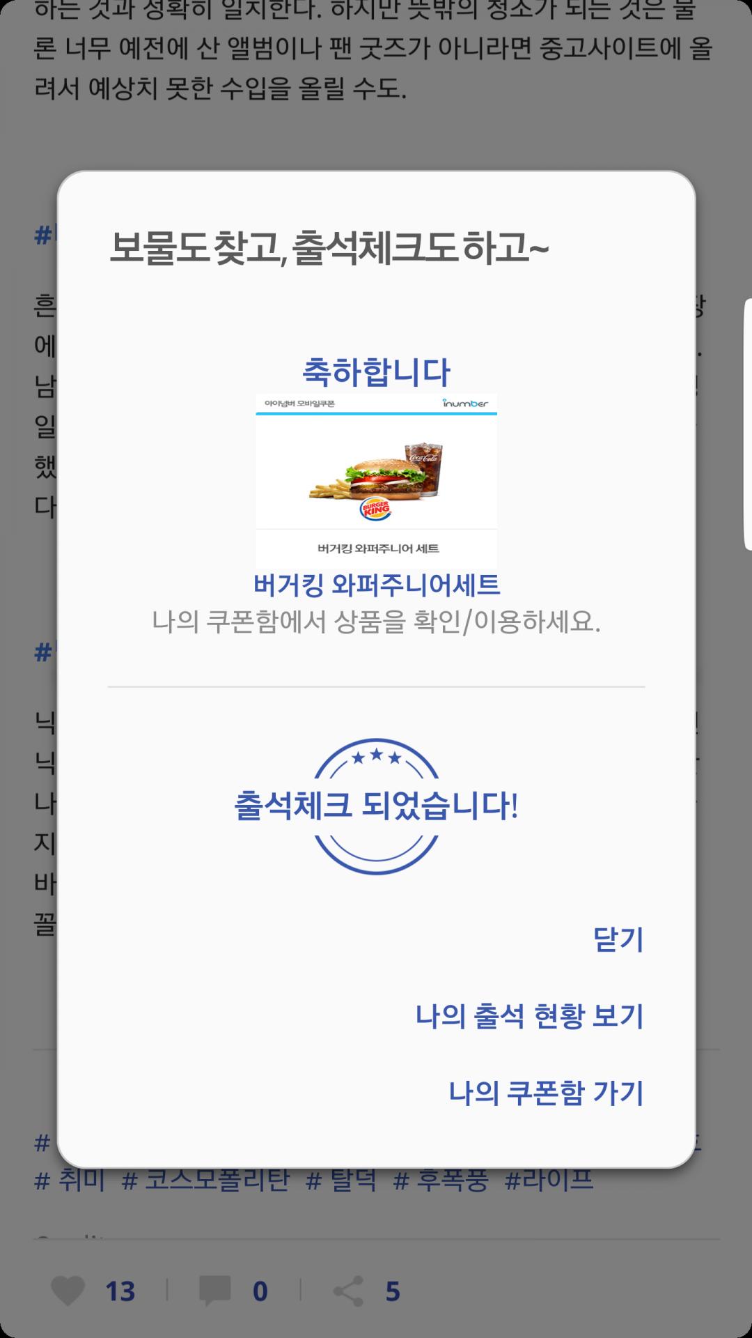 저는 오늘 스벅... 어제 버거킹