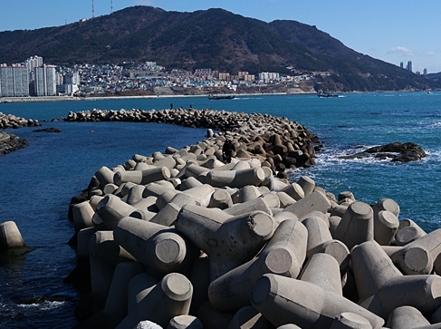 밀물썰물때 물이 들어오는 곳이라 테트라포트 사이사이에 따개비 같은게 엄청 붙어있습니다.
