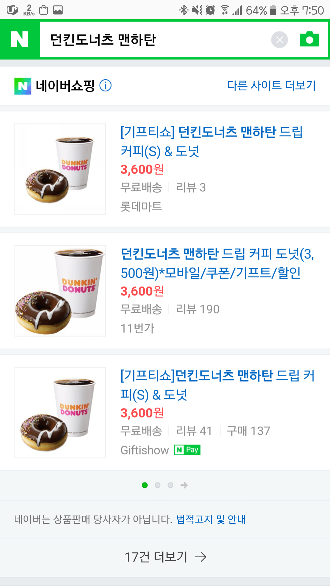 원래 받아야하는건 커피도넛 셋트 5600원짜리 두장이 와야하는데 2천원이나 더 싼 기프트콘으로 왔네요. 무려 4천원이나 차액이 발생합니다.