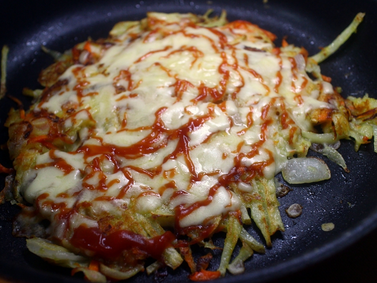 감자전에 모짜렐라 치즈를 올렸어요