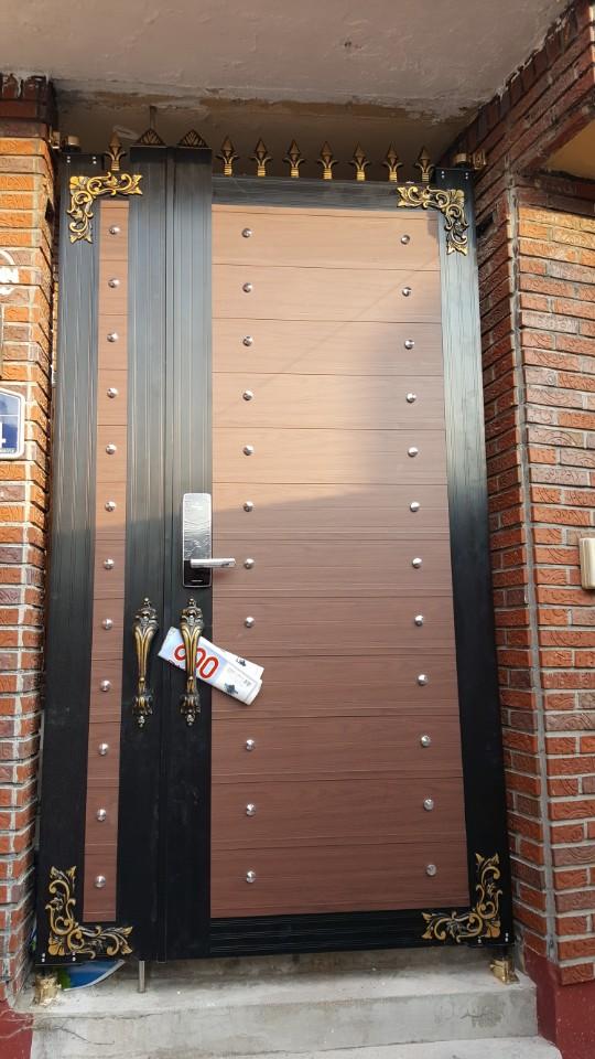 위사진처럼 현관문은 힌지가 일체형으로 붙어있기 때문에 저런모양이고 대문은 별도로 장착되기에 간격이 벌어집니다.