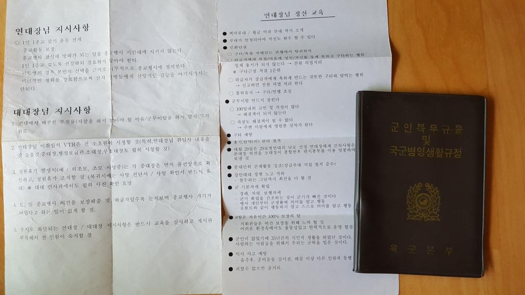 복무규율 군가모음집 임무수첩 세개 들고다녔습니다