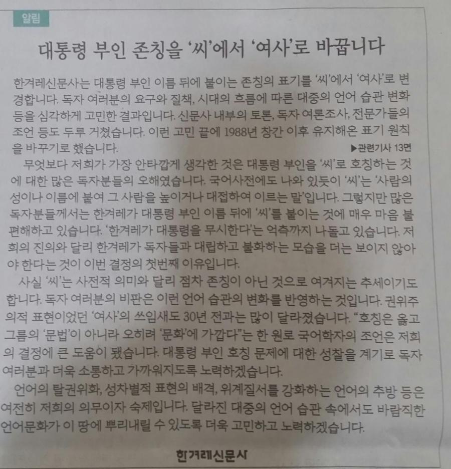 진짜로 씨 붙이면서 그랬다면 모를까. 설설 길 때는 여사 붙였으면서. |