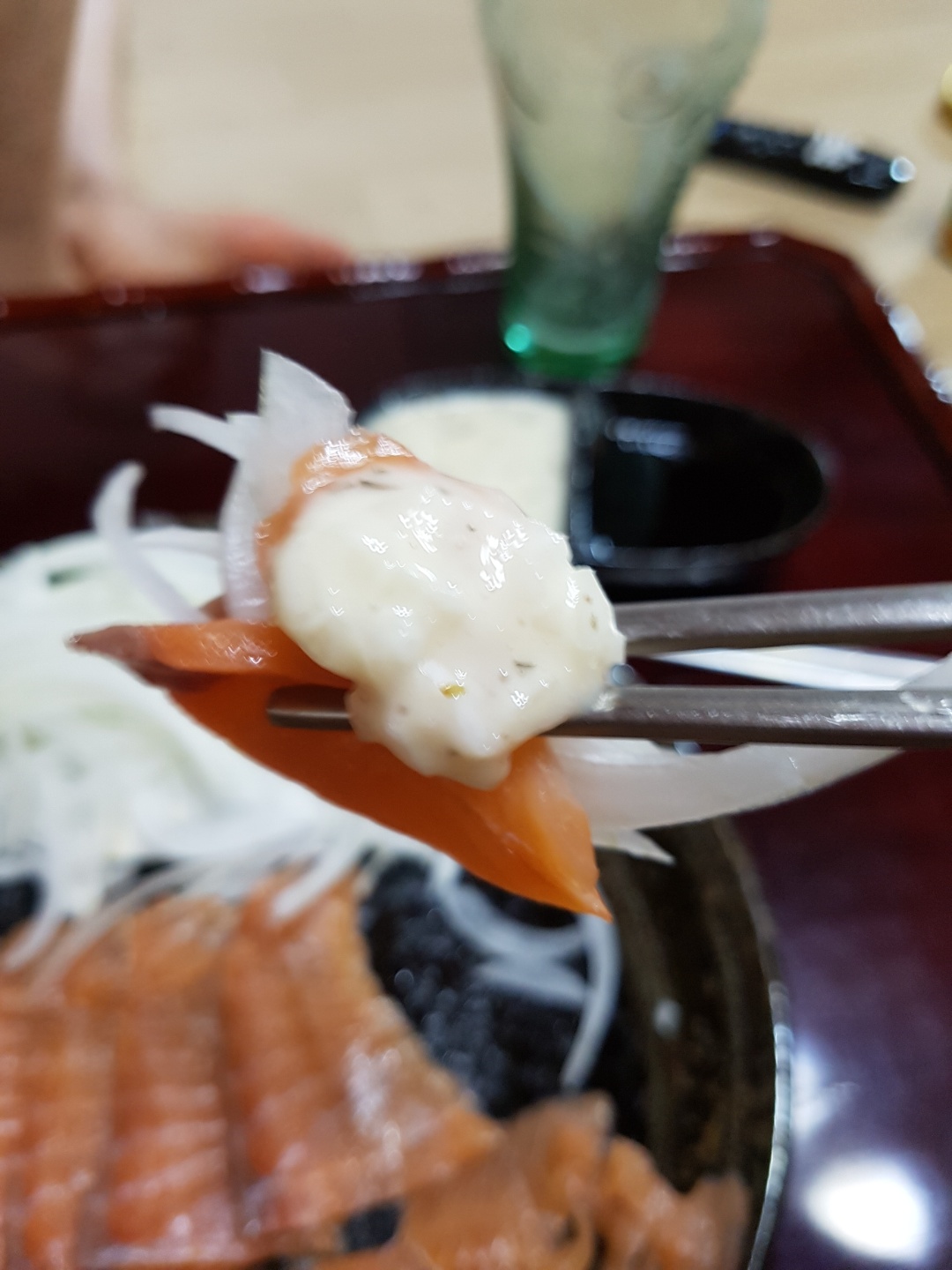 양파는 곁들여 먹으면 연어 느끼한걸 잡아줘서 필수인 것 같습니다.