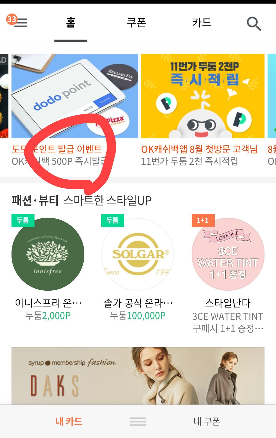 시럽앱에서 도도포인트카드 발급하면 OK캐시백 500포인트 주네요. > 자유게시판