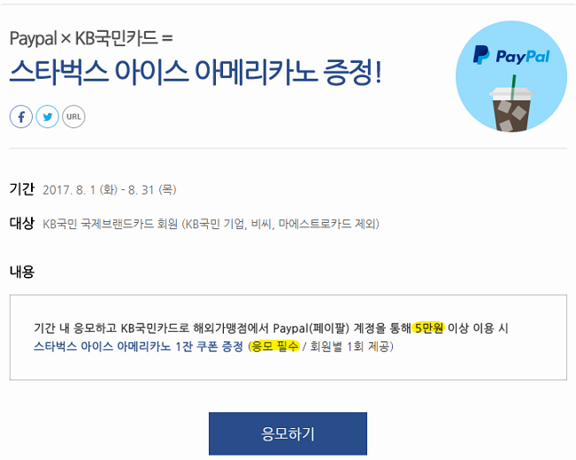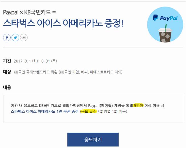 2. 페이팔 5만 원 이상 이용시 스벅 아이스 아메리카노 1잔