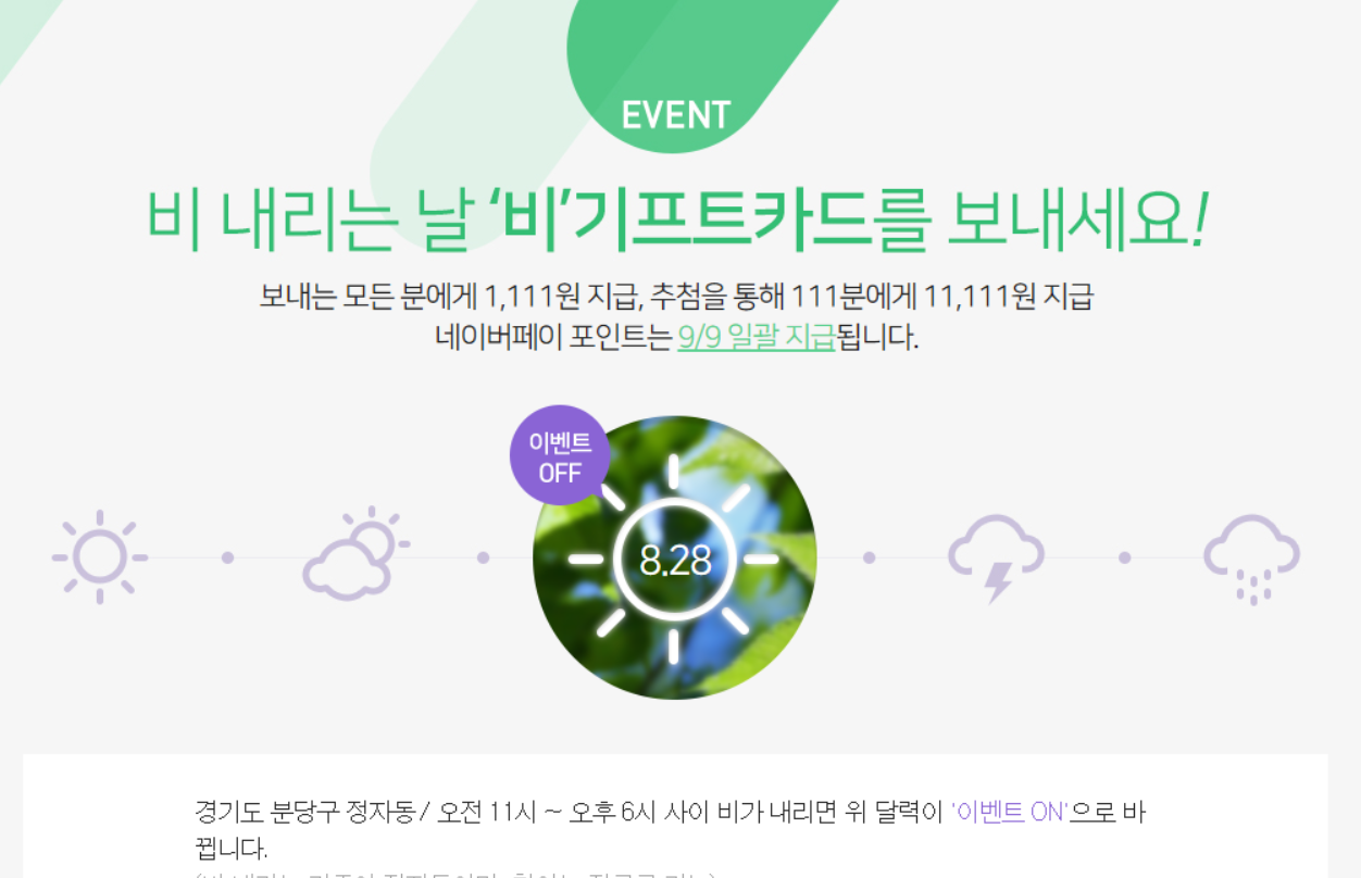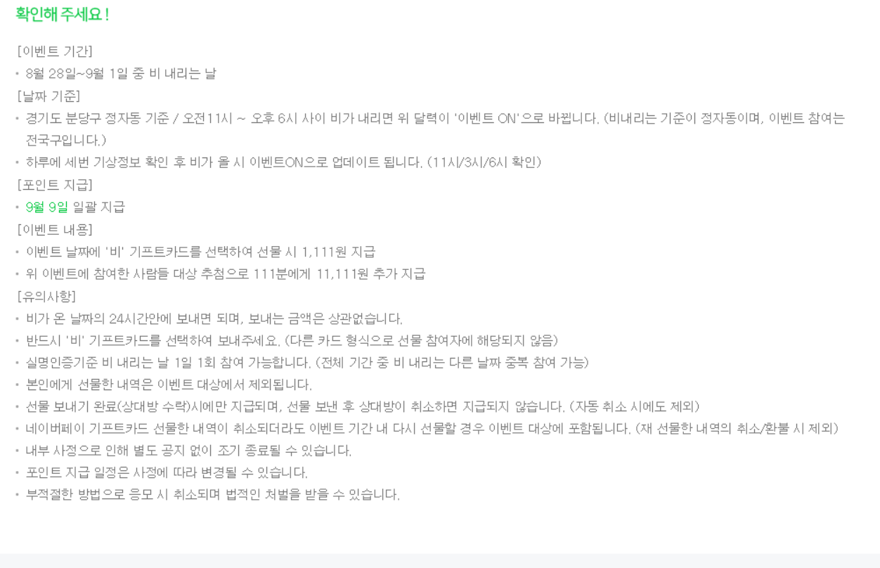 네이버페이 기프트카드 이벤트 있네요.. 비올 떄의 이벤트 > 자유게시판