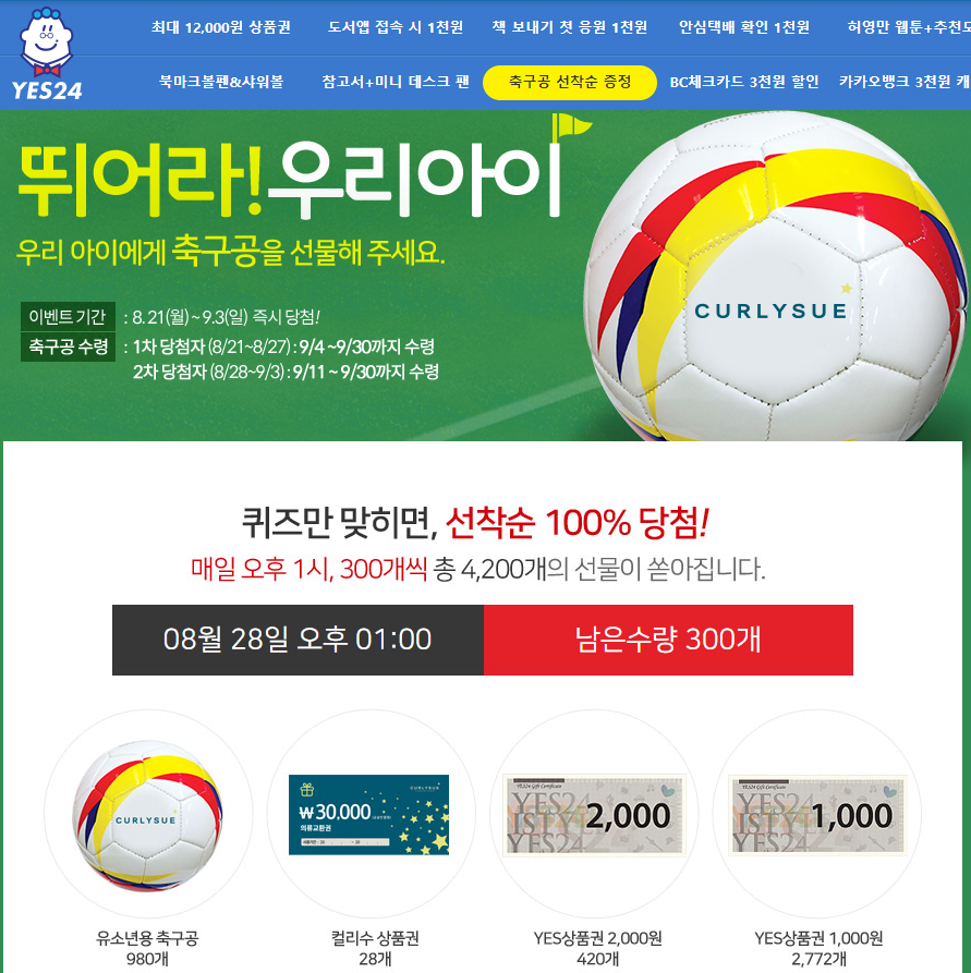 오후1시 YES24 이벤트 축구공 응모해보세요 > 자유게시판