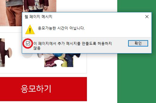 응모하기 한번 누르면 '응모가능한 시간이 아닙니다.' 라는 팝업창이 뜨는데