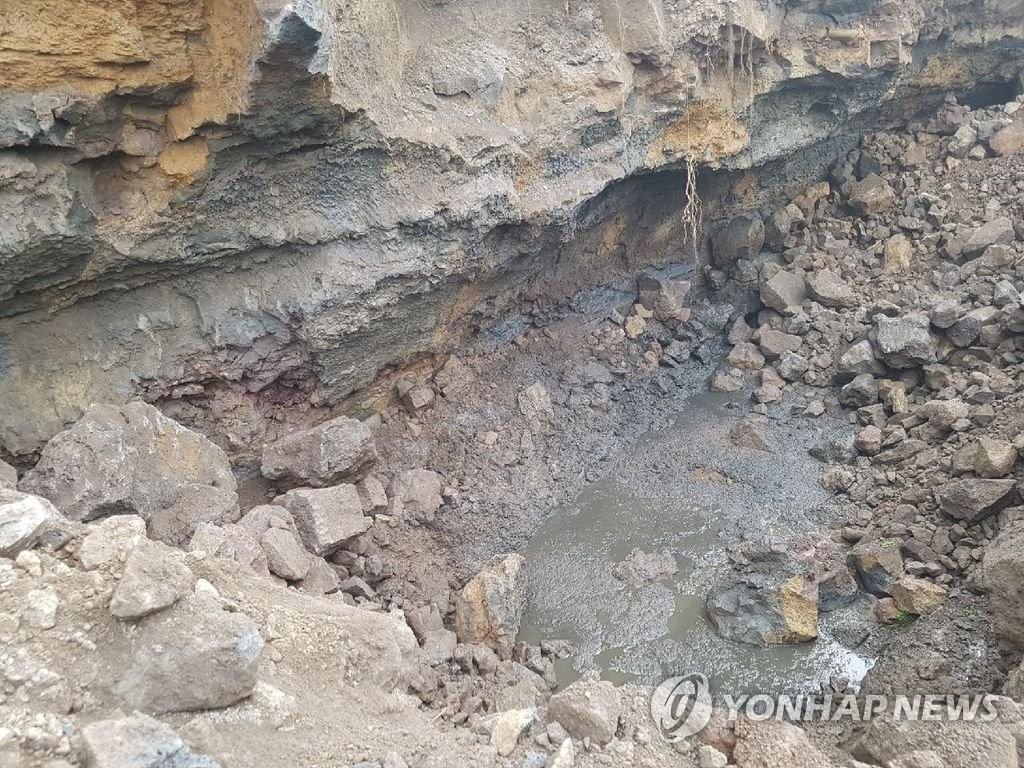 (제주=연합뉴스) 제주시 한림읍 상명리의 한 폐채석장에서 발견된 용암동굴이 주변 양돈장에서 오랜 기간 숨골을 통해 무단방류한 가축분뇨로 오염됐다는 사실이 26일 드러났다. 사진은 해당 용암동굴의 모습.
