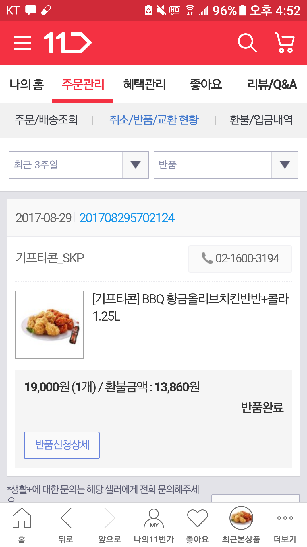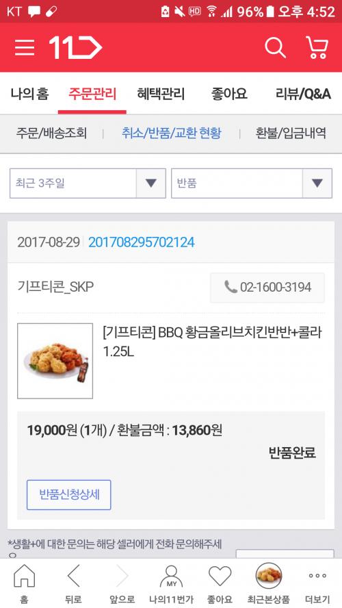 댓글보니 비비큐 반품햇네여