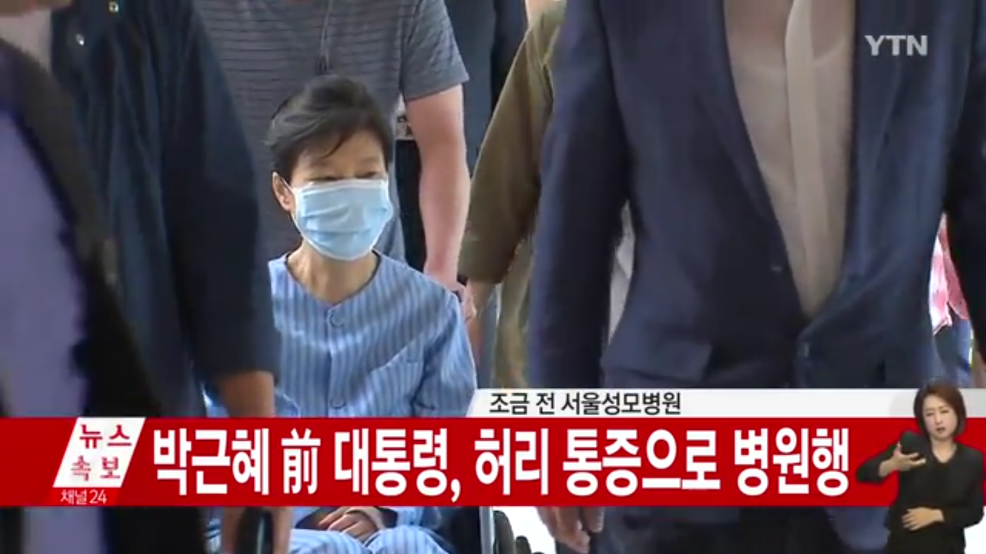 1심 판결을 앞두고 재벌 회장님 코스프레 시작하는 중일까요? 발가락 아파서 재판 출석 못한다더니 이젠 허리가 아프다고 휠체어 대동해서 병원 코스프레중이네요.