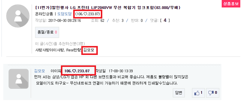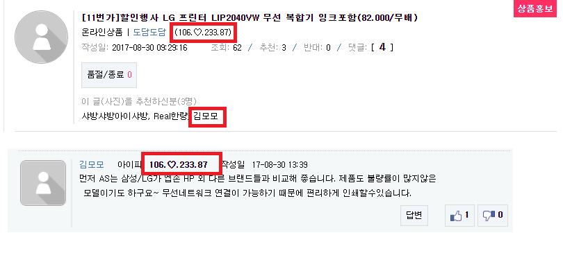 저도 프린터보고 반가워서 클릭했는데 뜬금 친절한 답변에  아이피가 굵게 나오더군요;