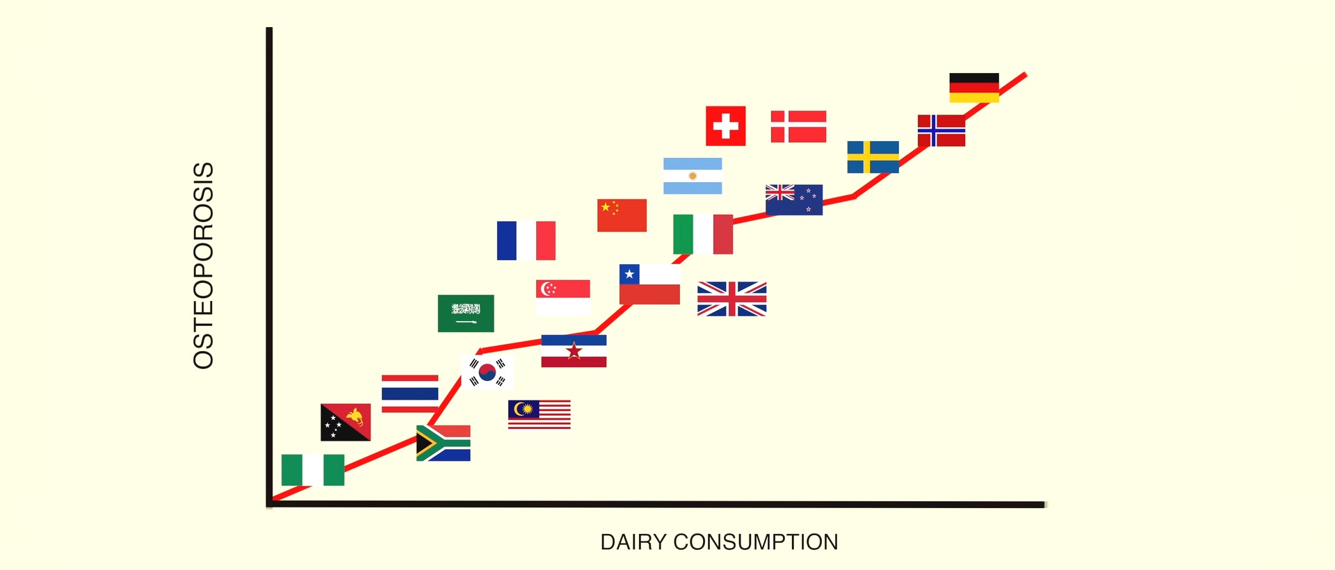 뭐 당연한 결과기도 하죠.. 다만, 그래프는 우유 섭취가 많을수록 골다공증이 더 걸리기 쉽다라는 결과에요. '칼슘 섭취에 우유가 좋다'라는 주장에 반박하기 위한.. |