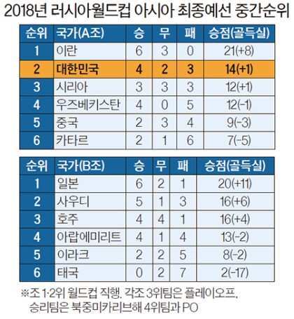 4. 월드컵 축구 → 이란과 0-0. 중국이 우즈벡 꺽어주는 덕분에 조 2위는 유지... 본선 진출, 5일 밤 12시 우즈베키스탄 원정 경기에 달려. 일본은 승점 20점으로 일찍이 본선 확정.(중앙)▼