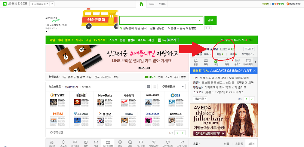 1. 네이버 메인 페이지에서 내 정보를 클릭
