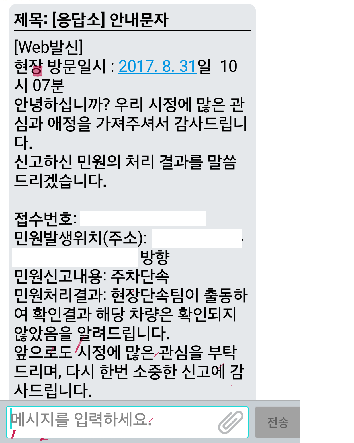 어젯밤 집앞 정류장에 트럭이 있길래 앱신고하고 야간에는 120신고하라던게 생각나서 문자 신고도 했습니다