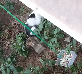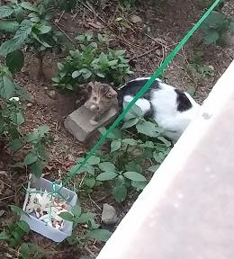 어느 날 앞 화단에 어미랑 새끼 고양이 있길래 밥주기 시작했는데