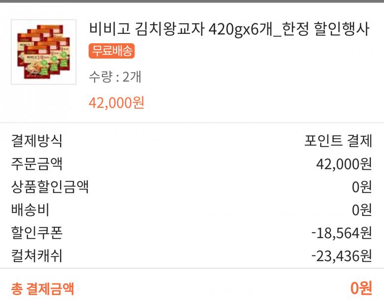 적용상품보기란에 비비고 김치 검색하시면 나옵니다~ 한정수량이라고 되어있는데 아직 구매가능하네요 ㅎ |