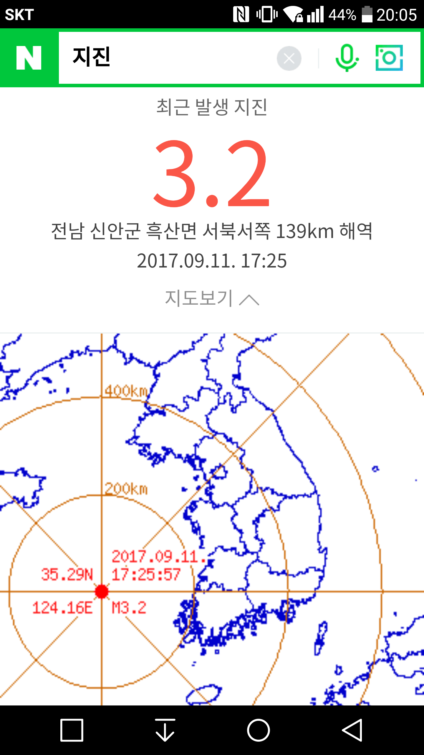 오늘 오후 5시 25분에 전남 신안군에 진도 3.2의 지진이 발생했었네요..