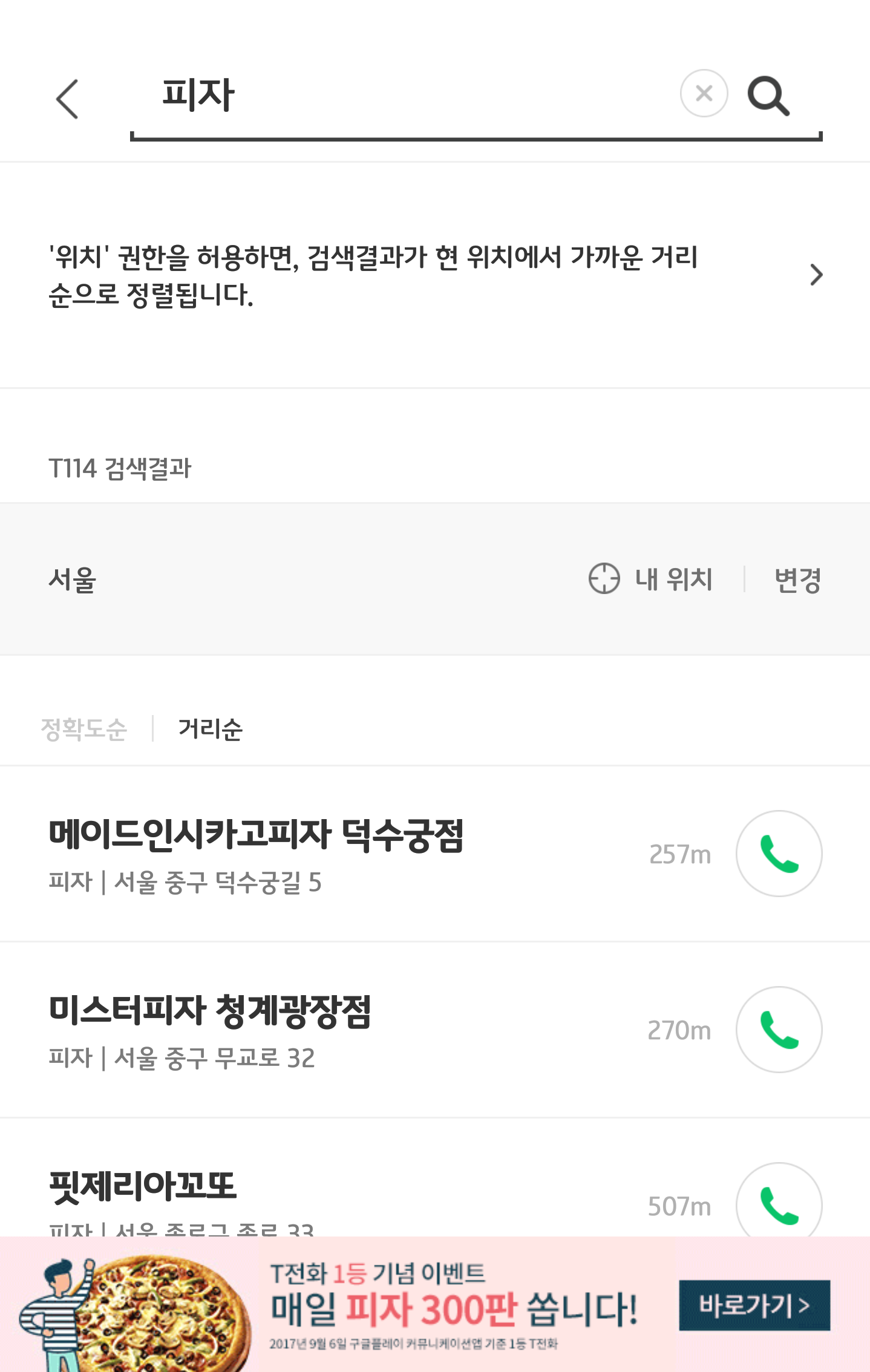 배너 없으면 검색창에 피자 검색하시면 밑에 배너 뜹니다.