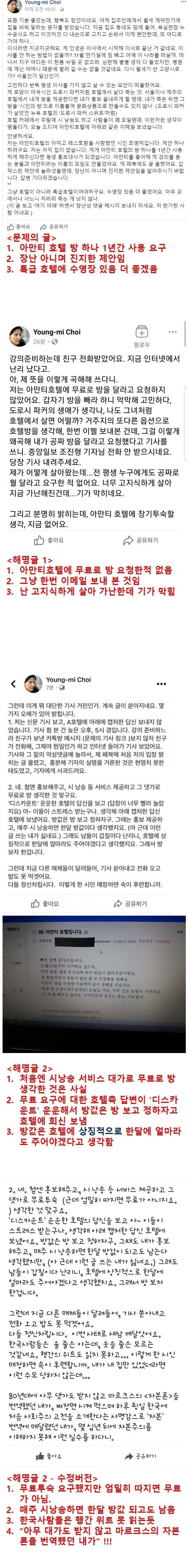 블로거가 돈요구 또는 무료제공을 요구하면서 안해주면 리뷰 악의적으로 나쁘게 하겠다 하는거처럼 호텔을 곤란하게 만든건 아닌 상황이라 굳이 이렇게 비난할건 없는 거 같아요.