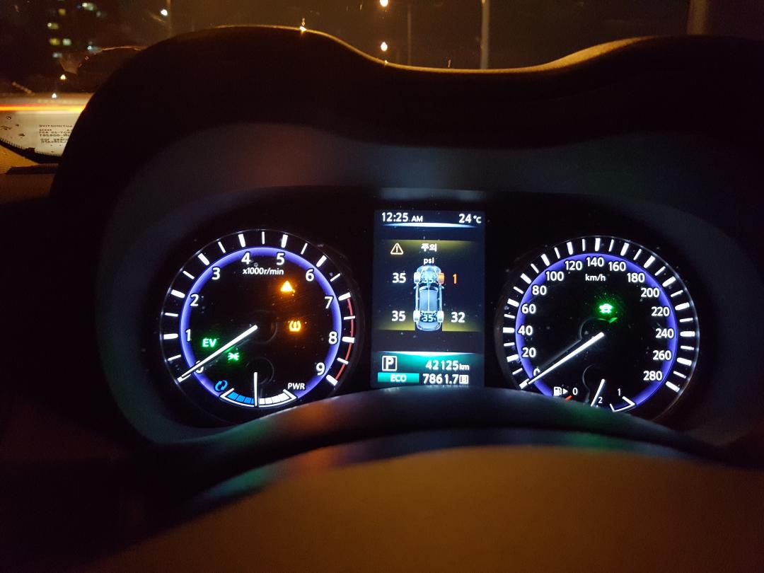 그러더니 퍽 소리가 나더니 펑크가 났어요. 타이어 압력쪽에서 펑크 펑크 표시가 나더라고요.