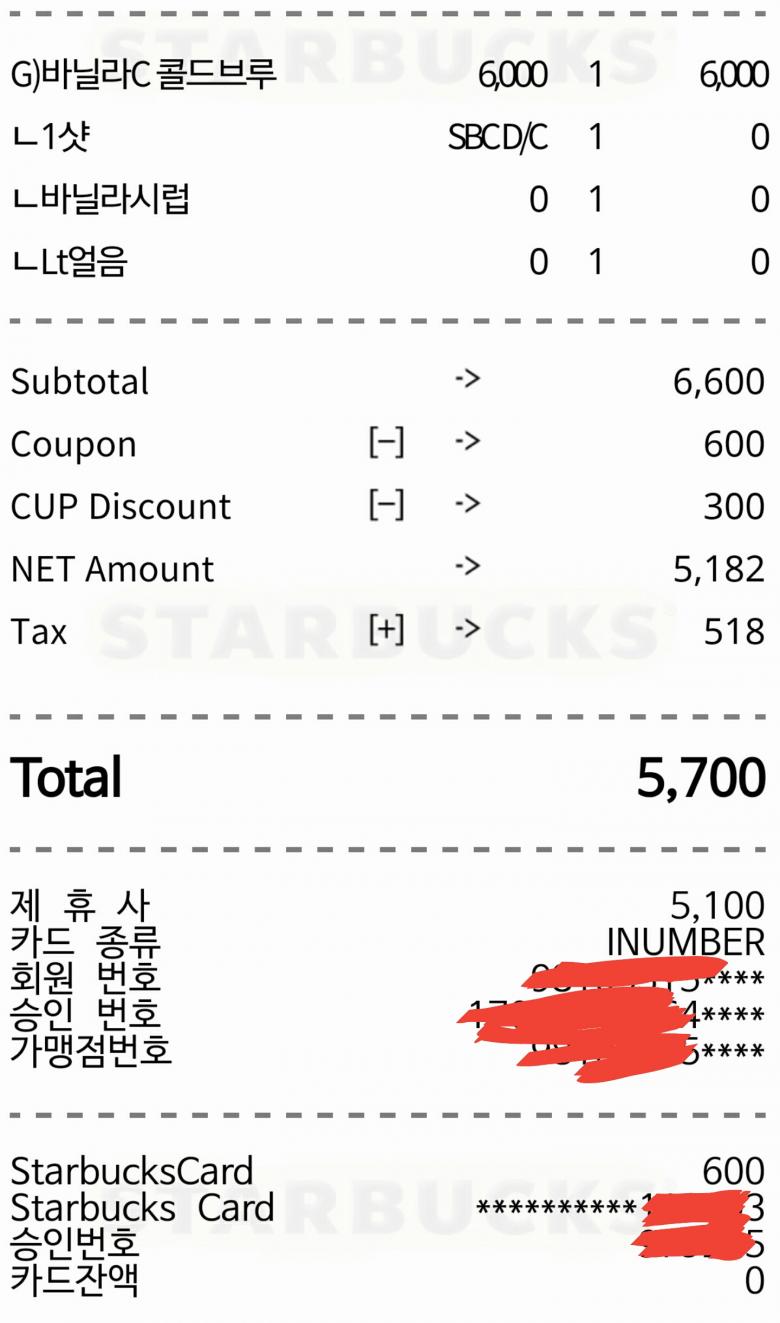 가격이 4800이라 기프티콘4100 스벅카드 700