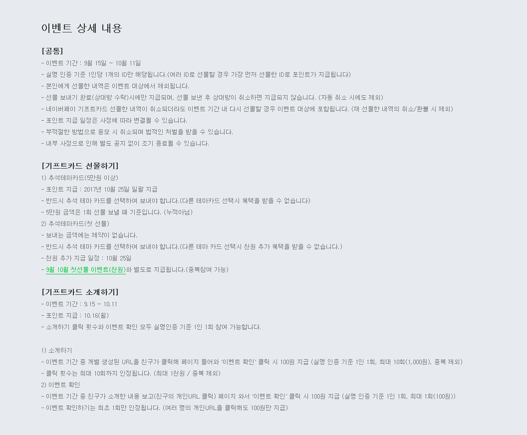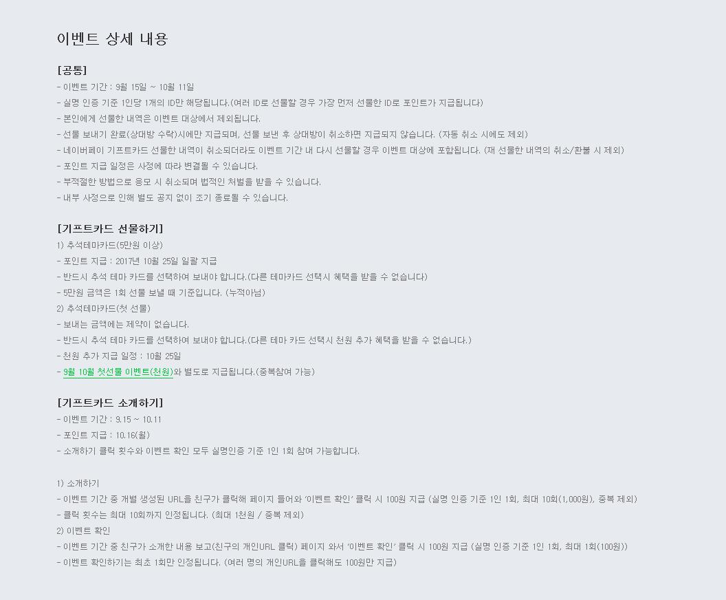 추석테마카드 첫선물은 저번에 비내리는날 이벤트 참여했어도 되는건지 모르겠네요. |