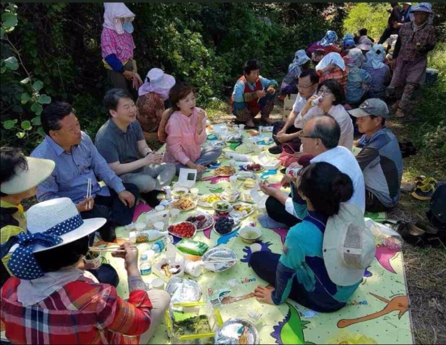 고구마 몇개 캐고 나서 지역 유지랑 점심식사한다네요.