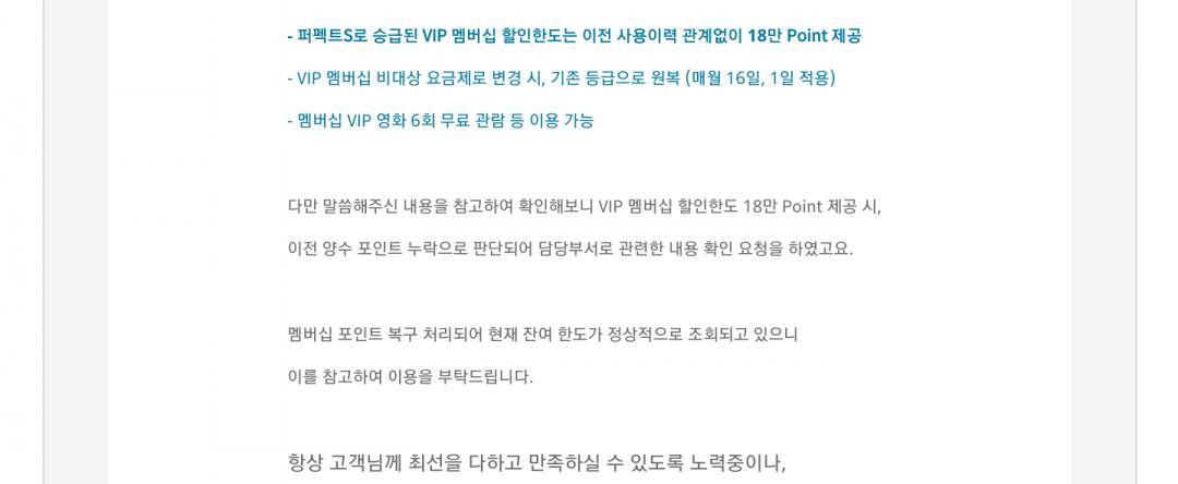 기존에 가족간 멤버십포인트 양도받은 포인트가 없어져서