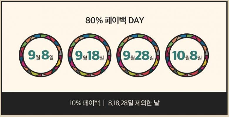 2. 80% 페이백이라고 써있던데 1만원짜리 영화표를 전액 포인트로 결제하면 그중 80퍼센트를 페이백 해준다는거죠?