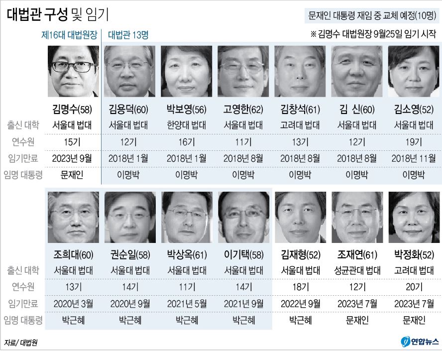 덕력이 추가로 발동되어 현재 대법원 구성과 임기