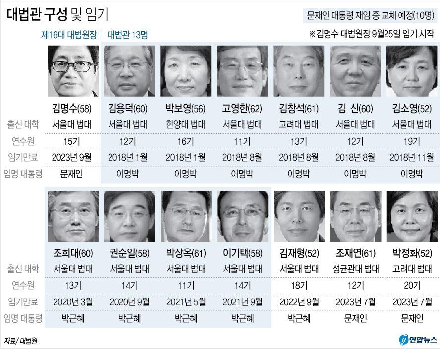 임명된 대법원장과 문재인 정부하에서 임명된 과반수