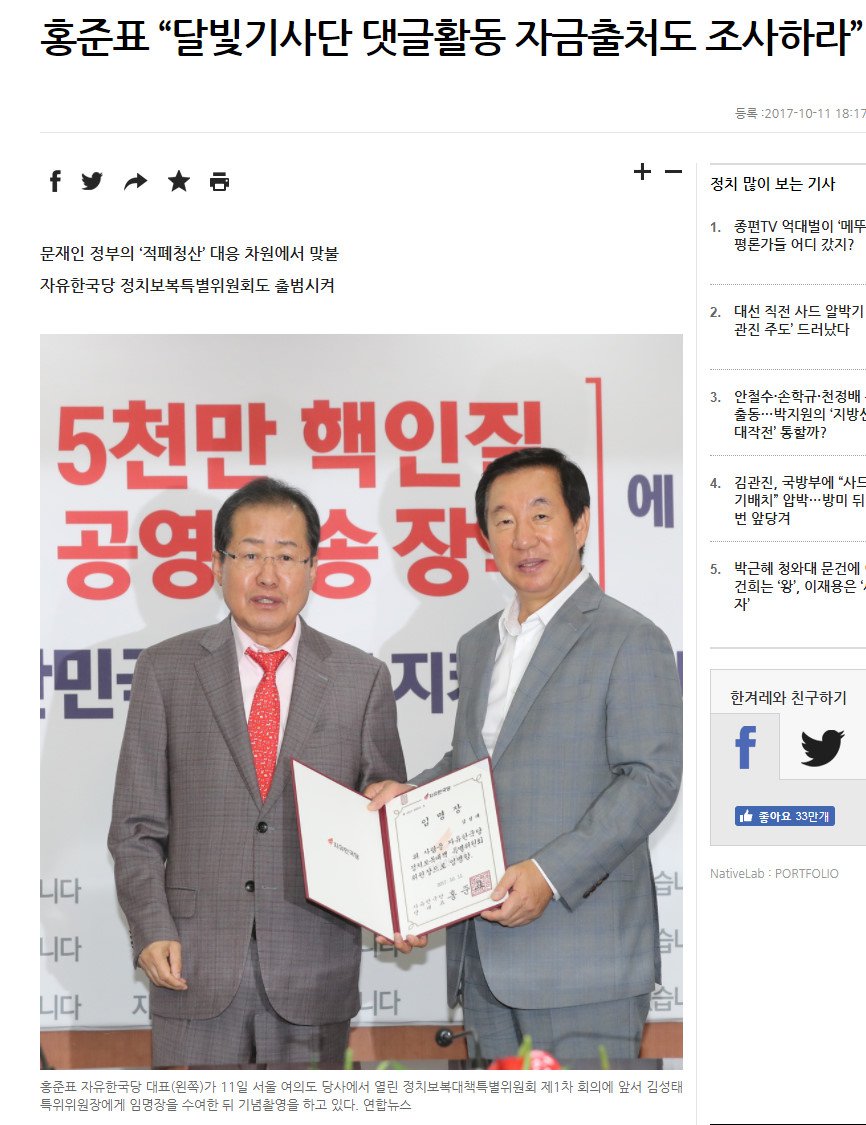 뭐 문건이라도 찾았답니까 ㅋㅋ 성완종 리스트에 '홍준표 1억'은 어찌되었는지... |