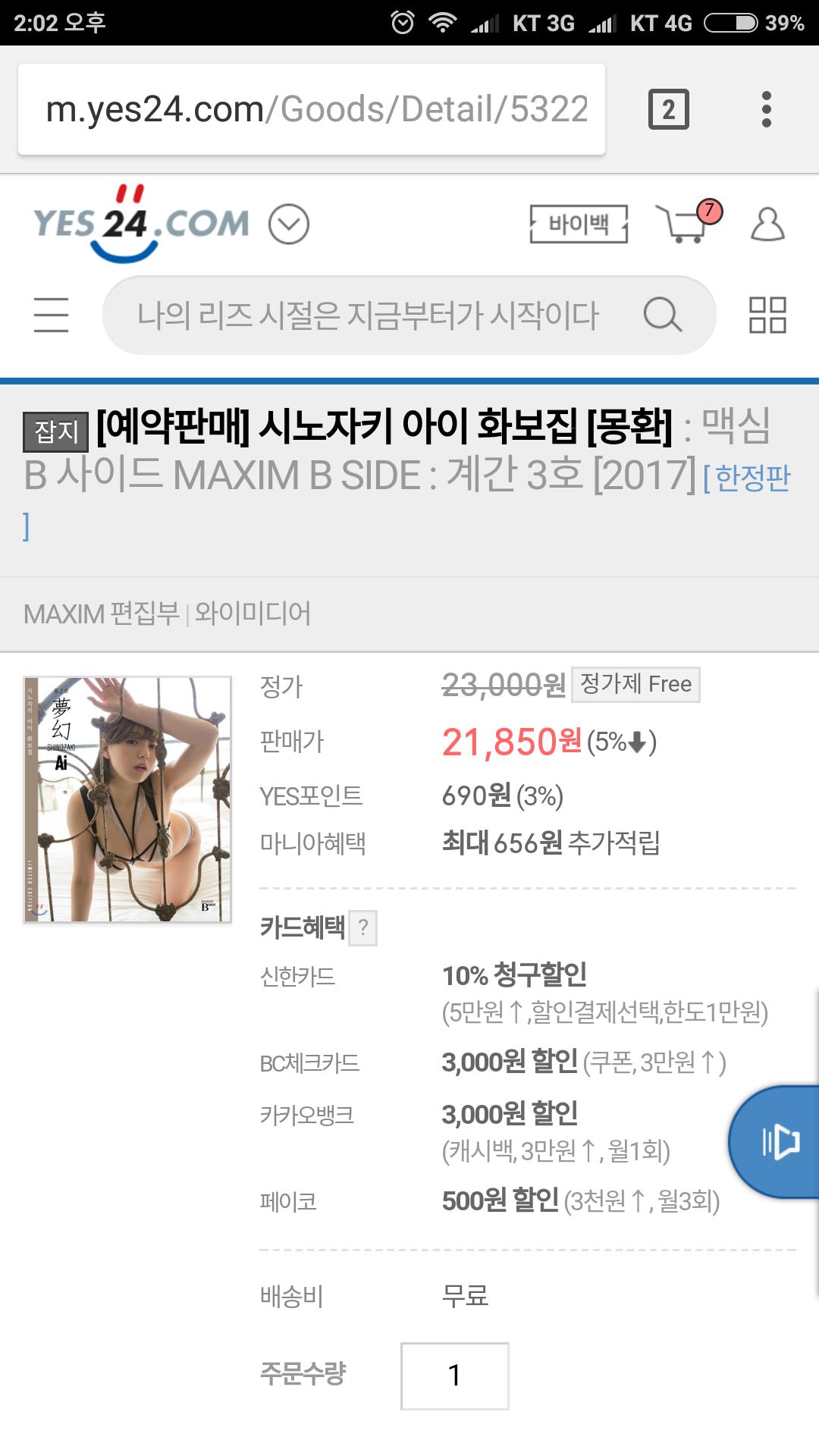 이번달 지급된 상품권과 예스머니면 저렴하게 살거같은데... 일단 장바구니로~