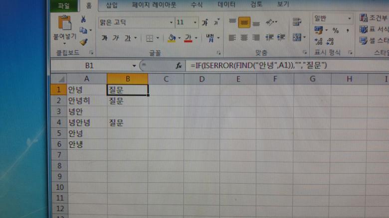 이런 식으로 "안녕"이라는 문자가 있을 시 옆칸에 질문이라는 문자가 나오게 할 수 있을까요?