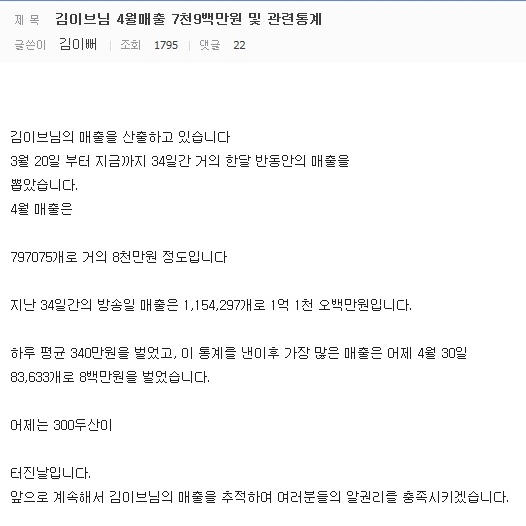 저기에 유튜브 채널 수익까지 합산해서 소속사 분배율 계산하면 대략 년 10억은 나오겠네요. 준 메이저급 연예인들도 요즘 온라인 기웃거리는게 다 이유가 있죠 |