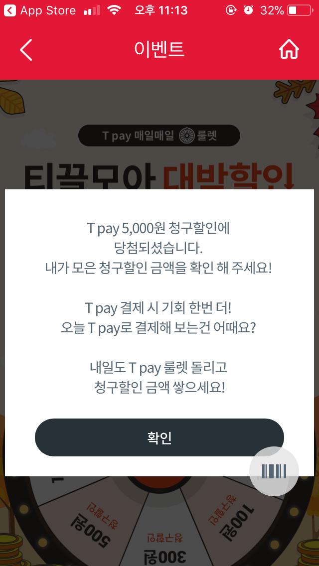이벤트 기간동안 모은금액만큼 티페이청구요금 할인되는것같아요