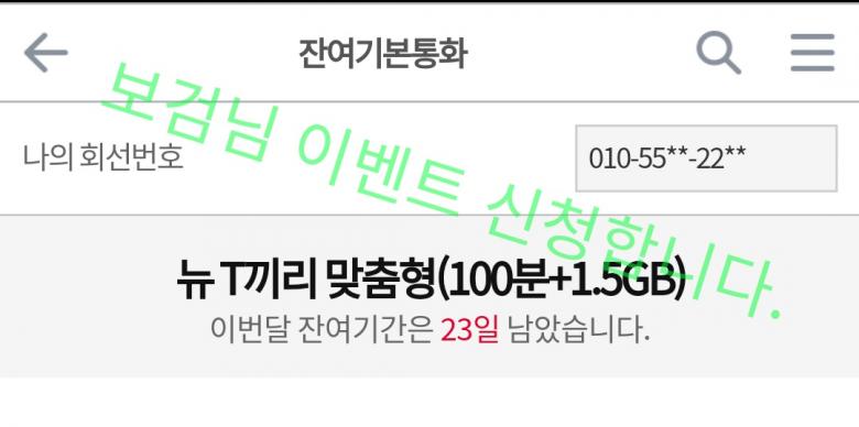 덧글로 사용하고 있는 요금제를 캡쳐해서 올려도 되고 아니면 당첨되고 쪽지로 보내주셔도 됩니다.