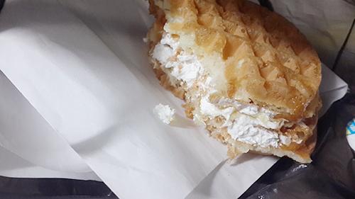 저희 동네에 드디어 풀빵 트럭이 왔길래 풀빵은 안 사고 와플만 2개 사왔어요ㅋㅋ