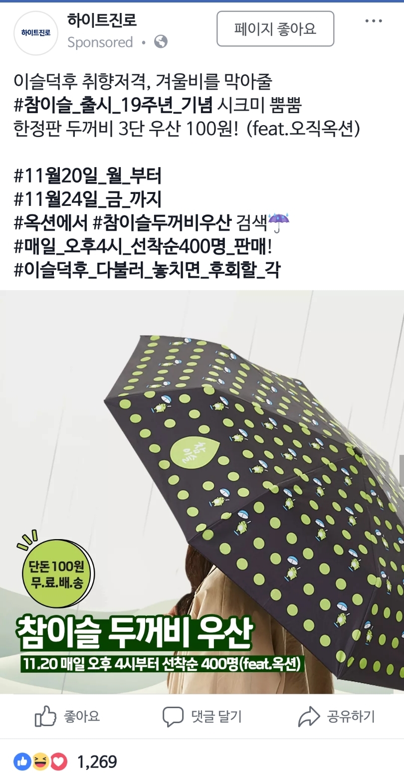 개구리도 아니고 두꺼비 우산...ㅡㅡ; 두꺼비덕후도 있을까요... 아 근데 생각해보니 집에 두고 우산 급한 손님한테 주는 용도로 좋겠네요 |
