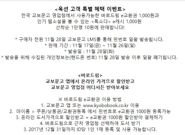 옥션에서 교보문고 바로드림 1000 + 톡소다 1000 원 10원에 파네요 > 자유게시판